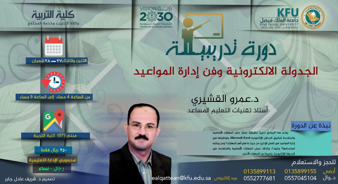 الخطة الزمنية للبرامج والدورات التدريبية لوكالة كلية التربية للتدريب وخدمة المجتمع