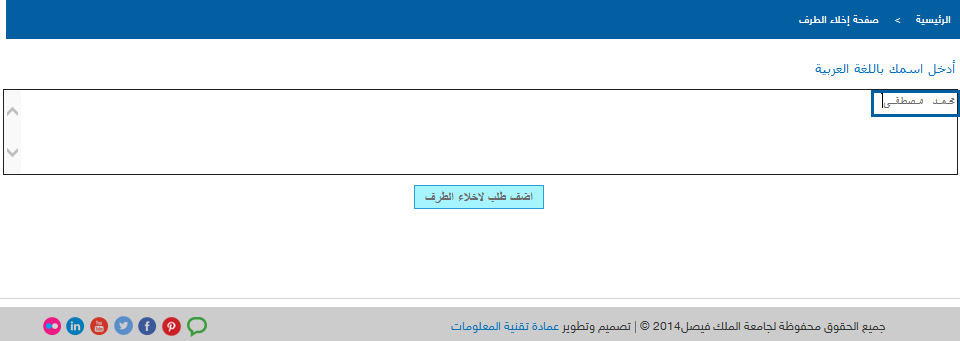 2- على طلاب كلية الدراسات التطبيقية وخدمة المجتمع وطلاب الدراسات العليا فقط بعد رؤية انتهاء طلب إخلاء الطرف الخاص بهم التوجه الى موظف المكافأت بعمادة القبول والتسجيل لأستلام شهادة إخلاء الطرف ثم التوجه بها إلي الكلية أو عمادة الدراسات العليا لاستلام الوثائق الخاصة بهم من هناك.
