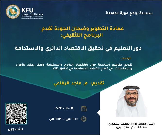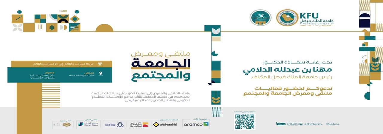ضمن فعاليات احتفاء الجامعة بمرور خمسين عام على تأسيسها وبمشاركة الشريك الأول شركة أرامكو السعودية وعدد من الجهات الحكومية والخاصة والقطاع غير الربحي ، تم تنظيم هذا الملتقى والمعرض والذي يعكس مستوى الشراكة والتكامل بين الجامعة والمجتمع عبر استعراض جهود الجامعة مع شركائها الاستراتيجيين من الجهات الحكومية والقطاع الخاص وغير الربحي، كما يسلط هذا المعرض خلال أيامه الأربعة الضوء على المبادرات النوعية الاجتماعية التي تنظمها الجامعة وتقدمها للمجتمع بمحافظة الأحساء.