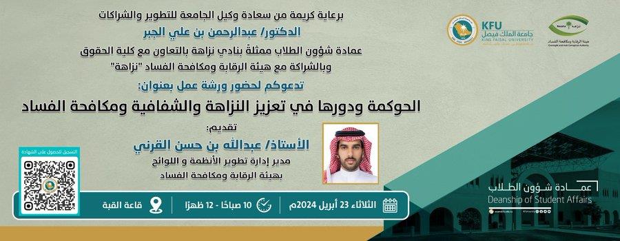 ندوة " تعزيز قيم النزاهة ومكافحة الفساد لطلاب المرحلة الجامعية".