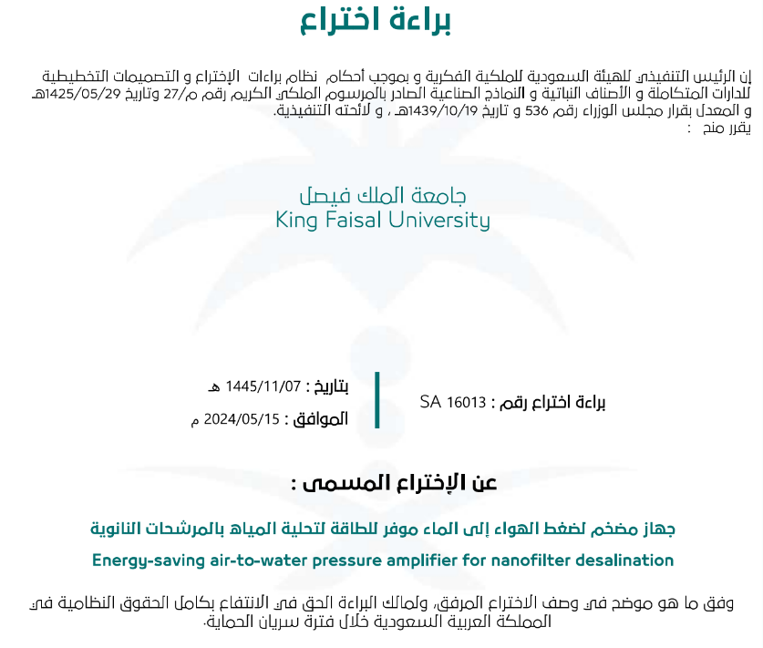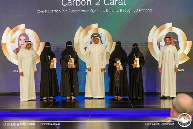 فازت جامعة الملك فيصل كواحد من ضمن أفضل ٦ مشاريع مشاركة على مستوى المملكة في هاكاثون ومعرض الطاقة (Net0Thon) والذي نظمته شركة أرامكو السعودية بمعرض الظهران (إكسبو) حيث قدم الفريق مشروعاً يهدف إلى استخدام الكربون المخزن وتصنيعه وتحويله إلى ألماس باستخدام تقنية (HPHT) التي تقوم على تحويل الكربون (الجرافيت) إلى ألماس عبر ضغطه مع حرارة مرتفعة لعدة أيام