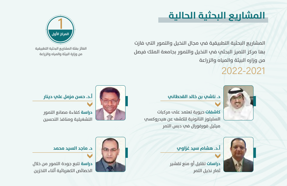 من أهم مشاريع معهد الدراسات والاستشارات في صنع السياسات الهادفة للقضاء على الفقر في جميع أشكاله والمرتبطة ارتباطا وثيقا بهوية الجامعة المؤسسية ورؤية المملكة 2030 هو مبادرة السعودية الخضراء ، و تطوير الممارسات الزراعية ، وممارسات الزراعة (سعودي جاب Saudi-GAP). بالضافة إلى المشاريع التالية:
