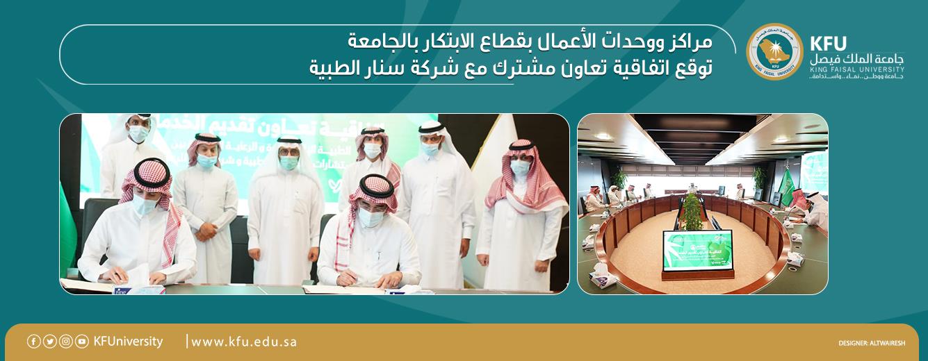 اتفاقية تعاون مشتركة مع شركة سنار الطبية في المجالات التعليمية والبحوث العلمية في المجال الصحي وبرامج خدمة المجتمع. وتشمل الاتفاقية التعاون في مجالات الرعاية المنزلية والعيادات الإلكترونية والاستشارات الطبية.
