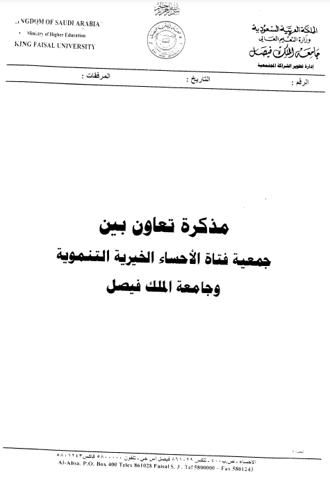 - اتفاقية التعاون بين جامعة الملك فيصل وجمعية الأشخاص ذوي الإعاقة بالأحساء
