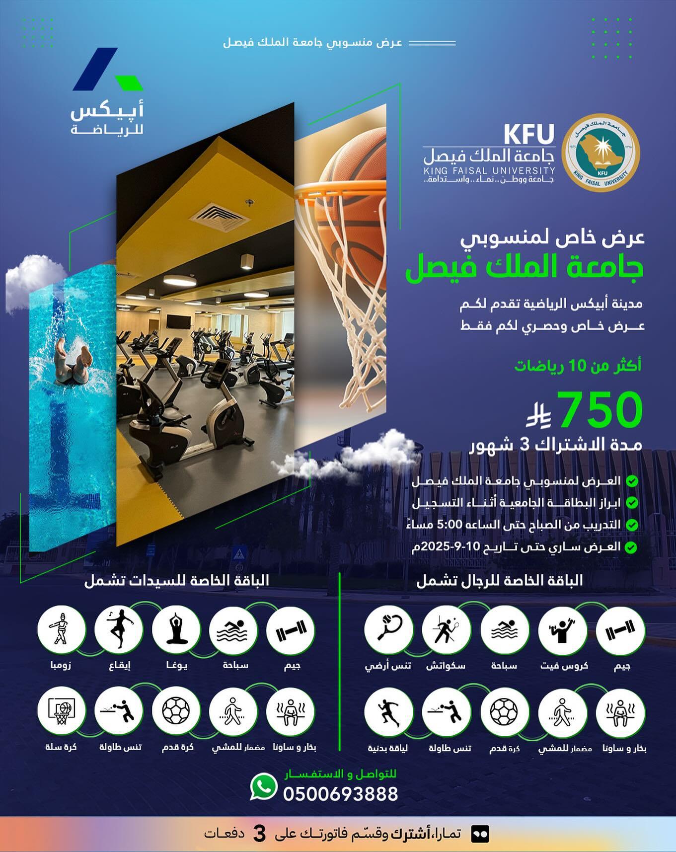 يقوم نادي الفتح بالتعاون مع جامعة الملك فيصل بتوفير عروض دورية لمنسوبي الجامعة وطلابها لممارسة الرياضة بأسعار متوفرة للجميع