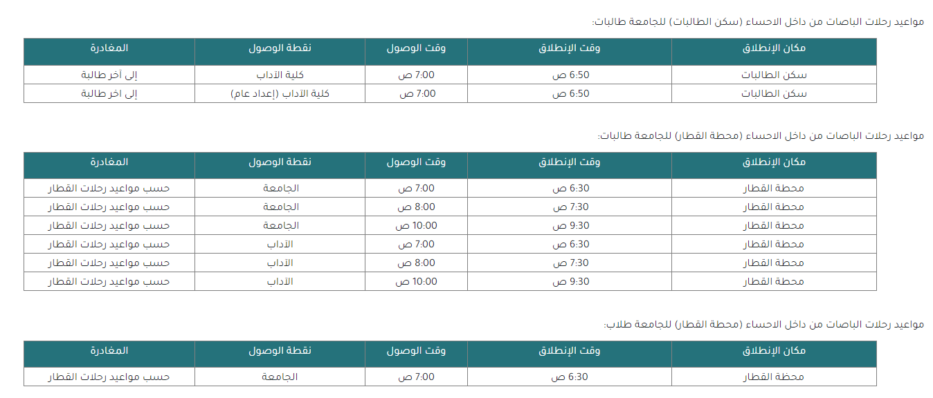 مثال عن مواعيد النقل الجامعي من محطة القطار في الاحساء